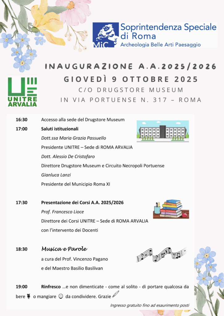 Inaugurazione Anno Accademico 2025/2026 Ott 3, 2025 | NEWS 📌 Segna la data in agenda 📌 ⏰ Quando? giovedì 9 ottobre a partire dalle ore 16.30 🏫👉🏼 Dove? presso il Drugstore Museum via Portuense 317 – Roma